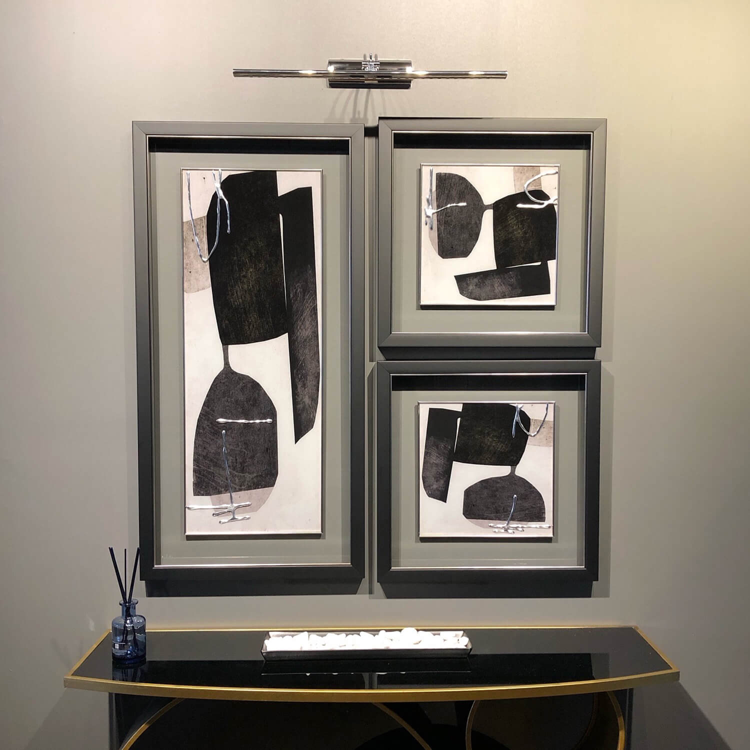 ARMA-1133 Modern Soyut 3lü Cam Paspartulu Tablo