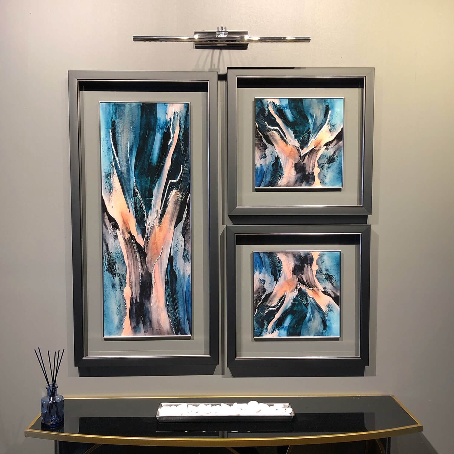 ARMA-1148 Modern Soyut 3lü Cam Paspartulu Tablo