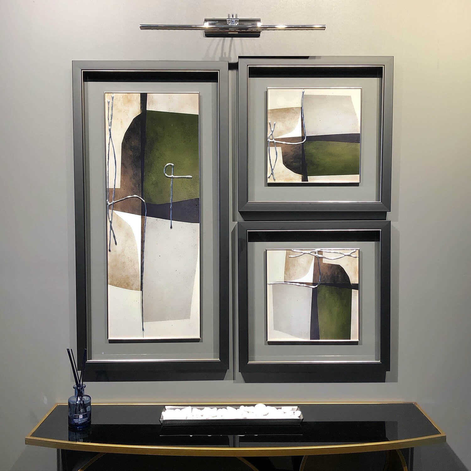 ARMA-1180 Modern Soyut 3lü Cam Paspartulu Tablo